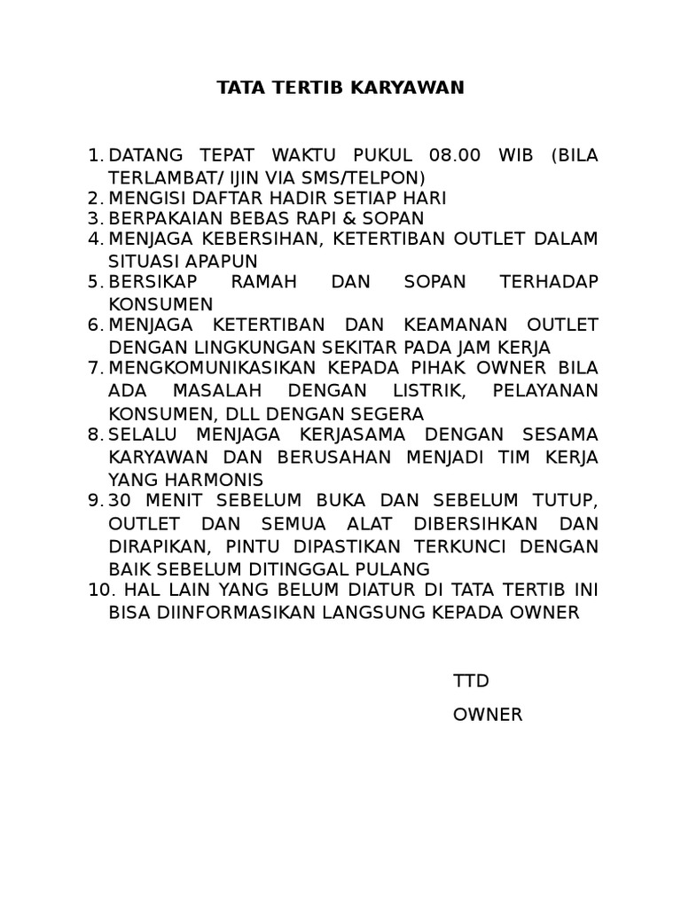 Tata Tertib Perusahaan Yg Paling Ajib Karyawan - Seringkali perusahaan mengeluarkan sp 1 diberikan sebagai bentuk teguran terhadap pelanggaran kedisiplinan karyawan. Tata tertib perpustakaan sekolah smp;