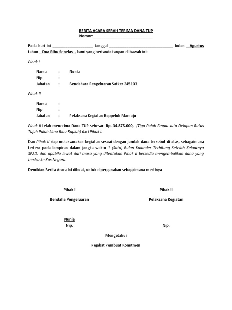 Berita Acara Serah Terima Dana Tup Pdf