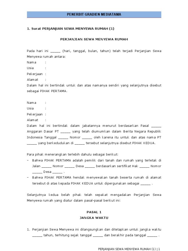 Surat Perjanjian Sewa-menyewa Rumah Pdf