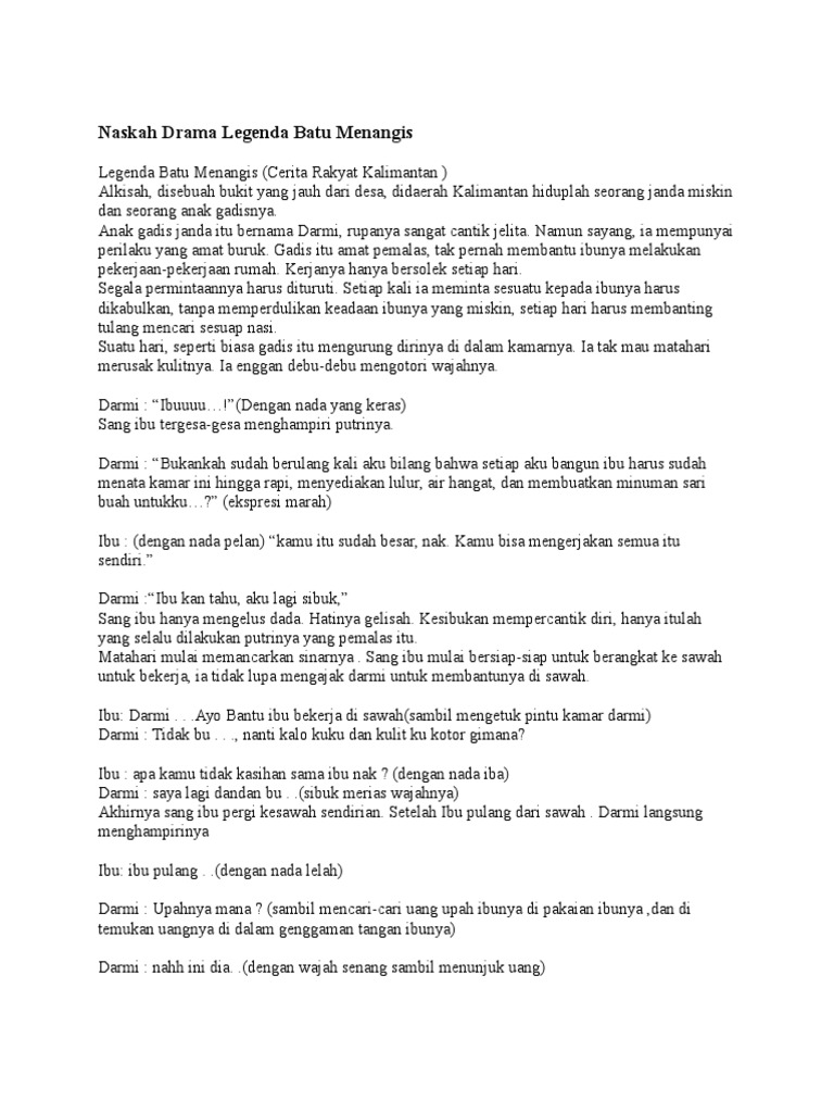 Rupaksa naskah drama pada zaman dahulu di kawasan ujung timur propinsi jawa timur terdapat sebuah kerajaan besar yang diperintah oleh seorang raja yang adil dan bijaksana. Naskah drama legenda batu menangis lagi pusing nyari ide buat naskah drama? Naskah drama telaga warna babak 1 narator :
