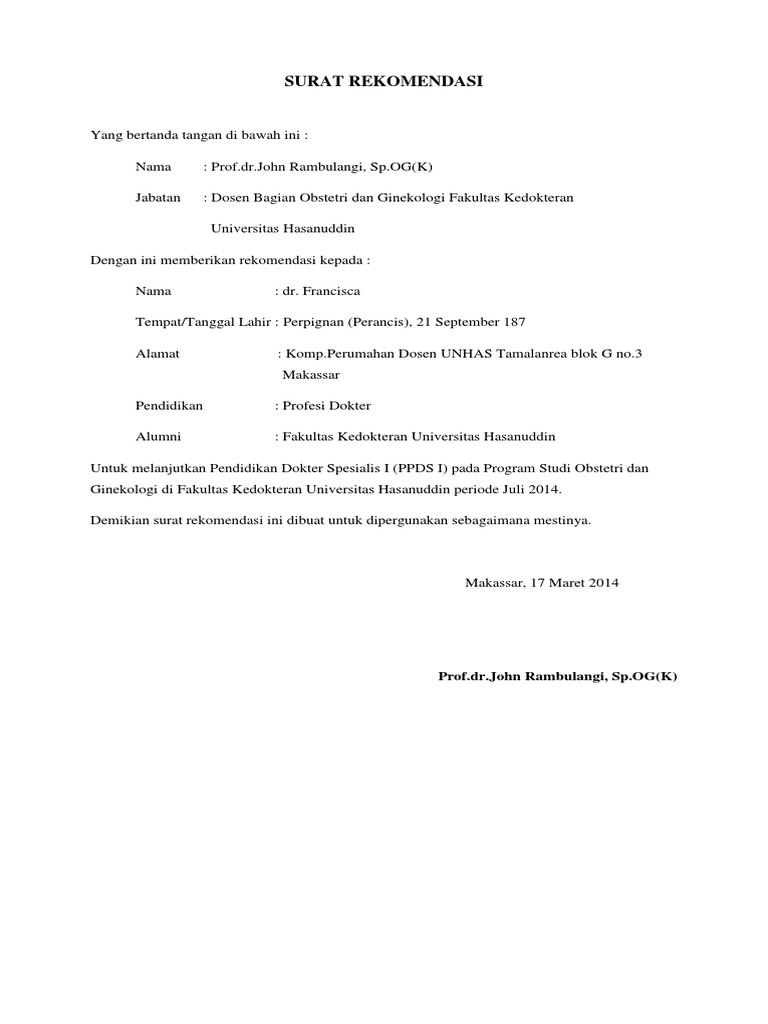 Surat Rekomendasi Ppds Pdf