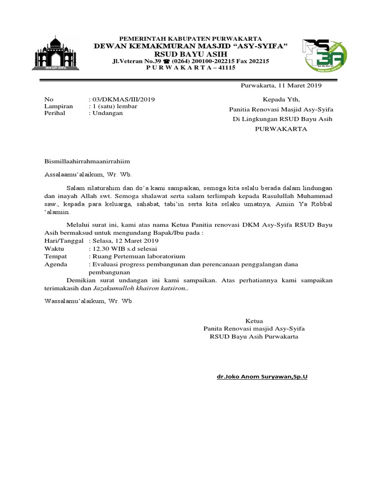 Kop surat dkm al hidayah bedahan sawangan depok. Contoh surat undangan rapat contohsurat16ketika hendak ingin melaksanakan suau acara tertentu baik resmi atau tidak tentu kita harus membuat surat undangan untuk memberitahukan pihak lain mengahadiri acara tersebut. 15 contoh surat undangan resmi tidak resmi rapat pengajian dll.