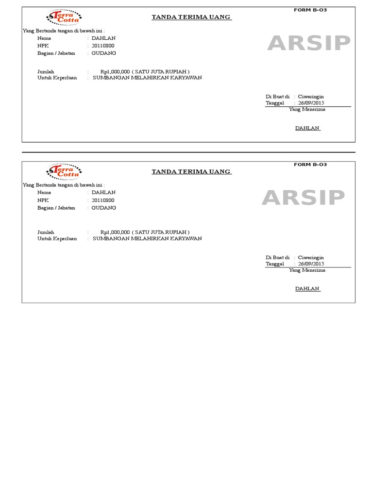 Contoh Tanda Terima Uang - Wood Scribd Indo