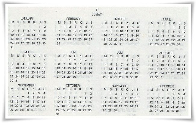 Tanggalan jawa 1993. Bearti gg akurat utk tgl hijriah dan jawa nya. Digunakan untuk mencari data tanggal kelahiran. Hari ialah hari tujuh yaitu hari dalam seminggu (yang kita kenal dengan nama hari hari minggu/ahad, senin, selasa, rabu, kamis, jum’at, dan sabtu).