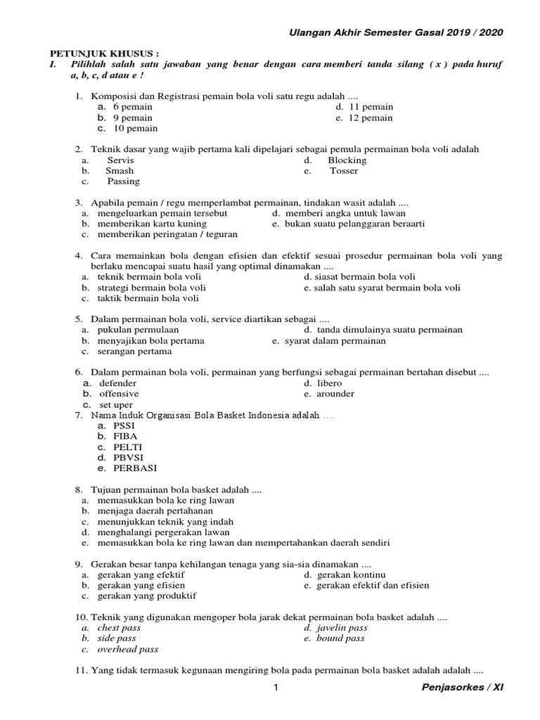 Induk organisasi bola voli di indonesia 5. Teknik dasar yang wajib pertama kali dipelajari oleh pemula ialah. Jumlah pemain bola voli dalam satu regu 3.
