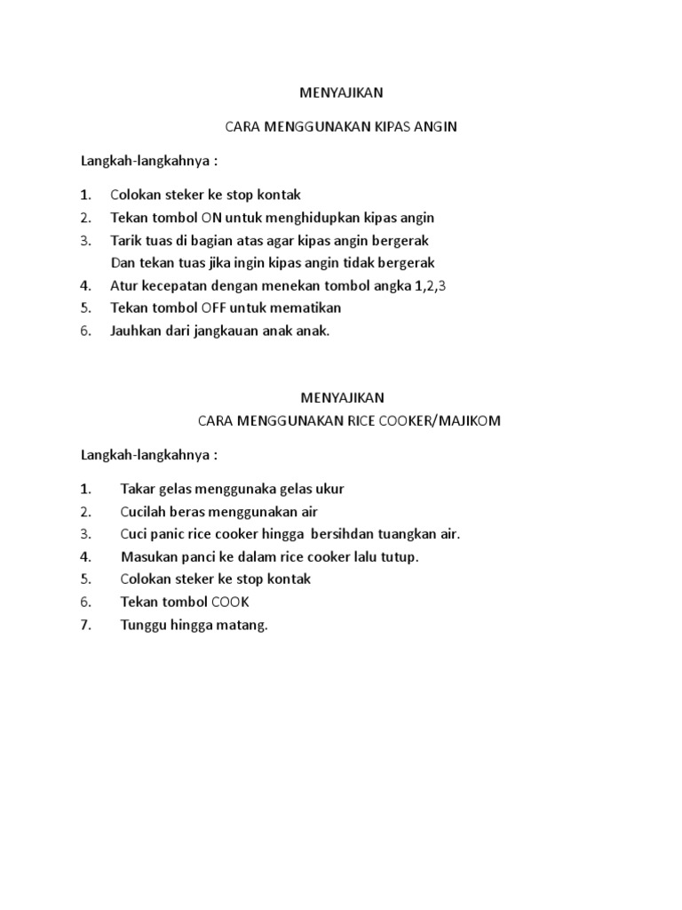 Contoh Petunjuk Pemakaian Kipas Angin Pdf