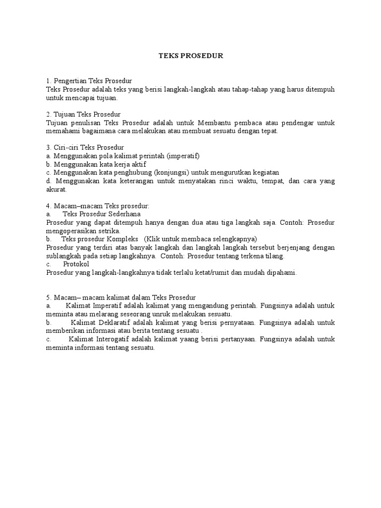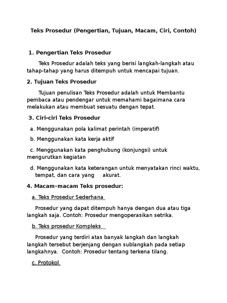 Teks prosedur adalah sebuah teks yang berisi langkah atau tahapan untuk melakukan suatu hal. Perhatikan kalimat di bawah ini buat isi kue dengan cara mencampur potongan buah dengan selai. Identitas yang diulas baik dari suatu buku maupun film.