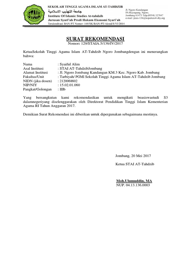 Contoh Surat Rekomendasi Dr Ketua Pdf