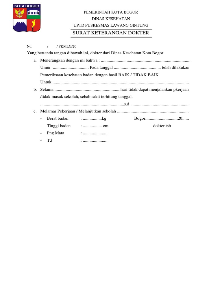Contoh Surat Keterangan Dokter Bogor - Contoh Surat Lengkap Gratis