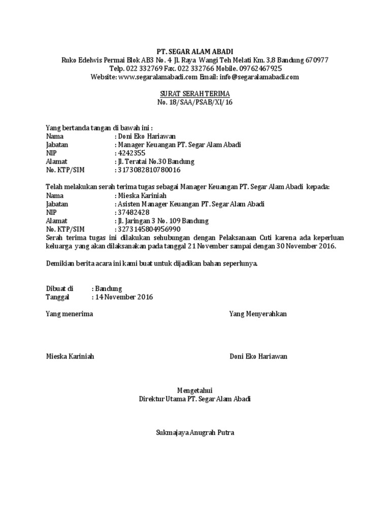 Contoh Surat Serah Terima Pekerjaan Karena Cuti Pdf