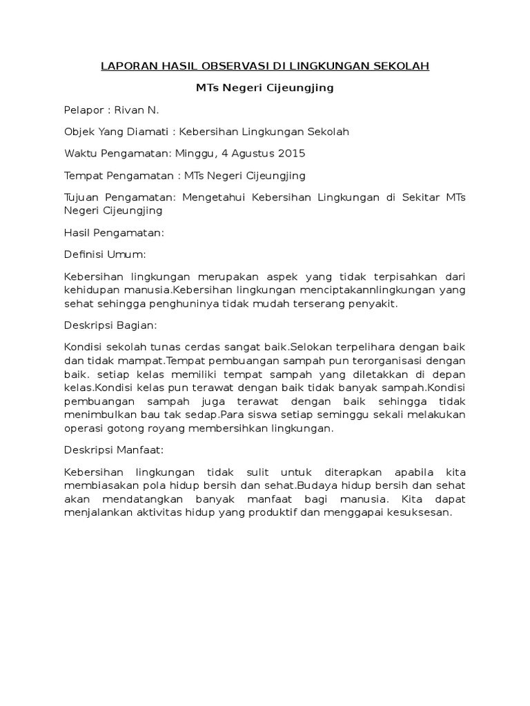 Teks Laporan Hasil Observasi Lingkungan Sekolah Pdf