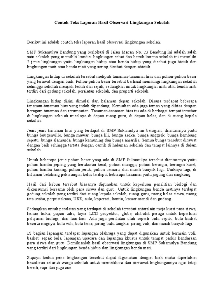 Contoh Teks Laporan Hasil Observasi Lingkungan Sekolah Pdf