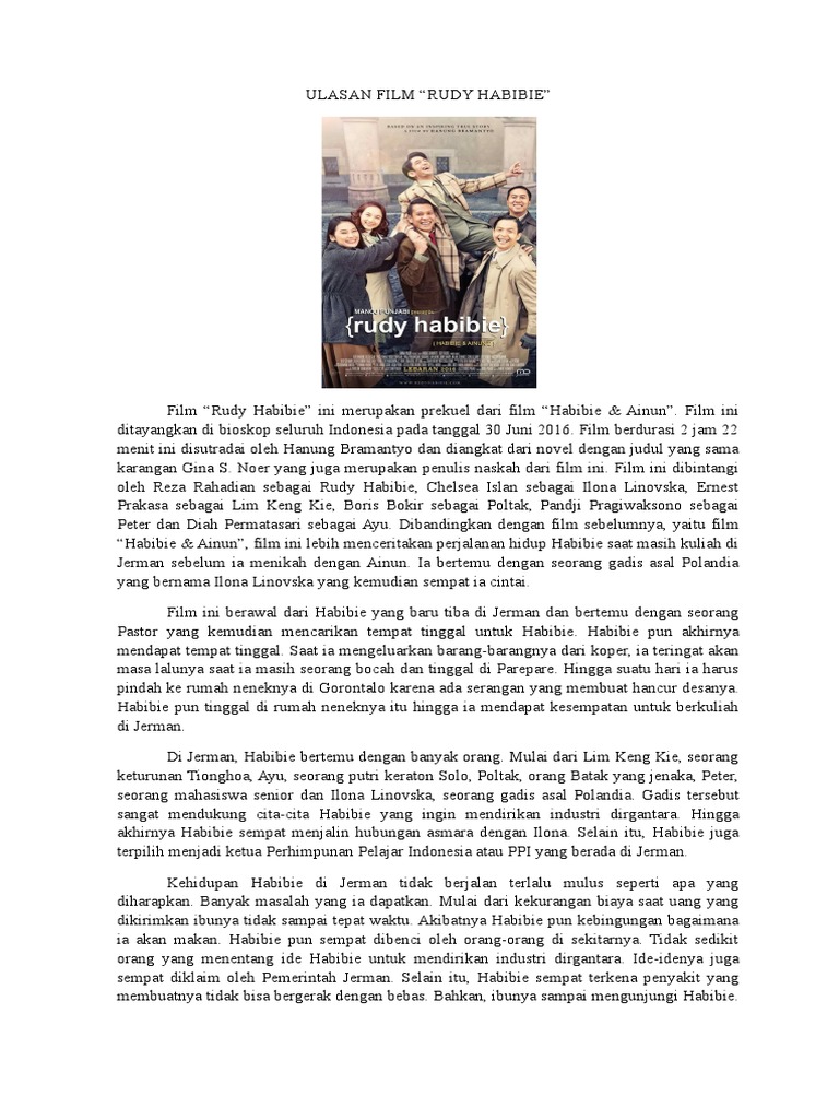 Contoh teks ulasan film habibie dan ainun film habibie dan ainun merupakan sebuah film otobiografi yang diadaptasi dari buku yang ditulis langsung oleh bapak bj. Tugas bindo habibie ainun afifah azalia xi mia 2 teks ulasan film.