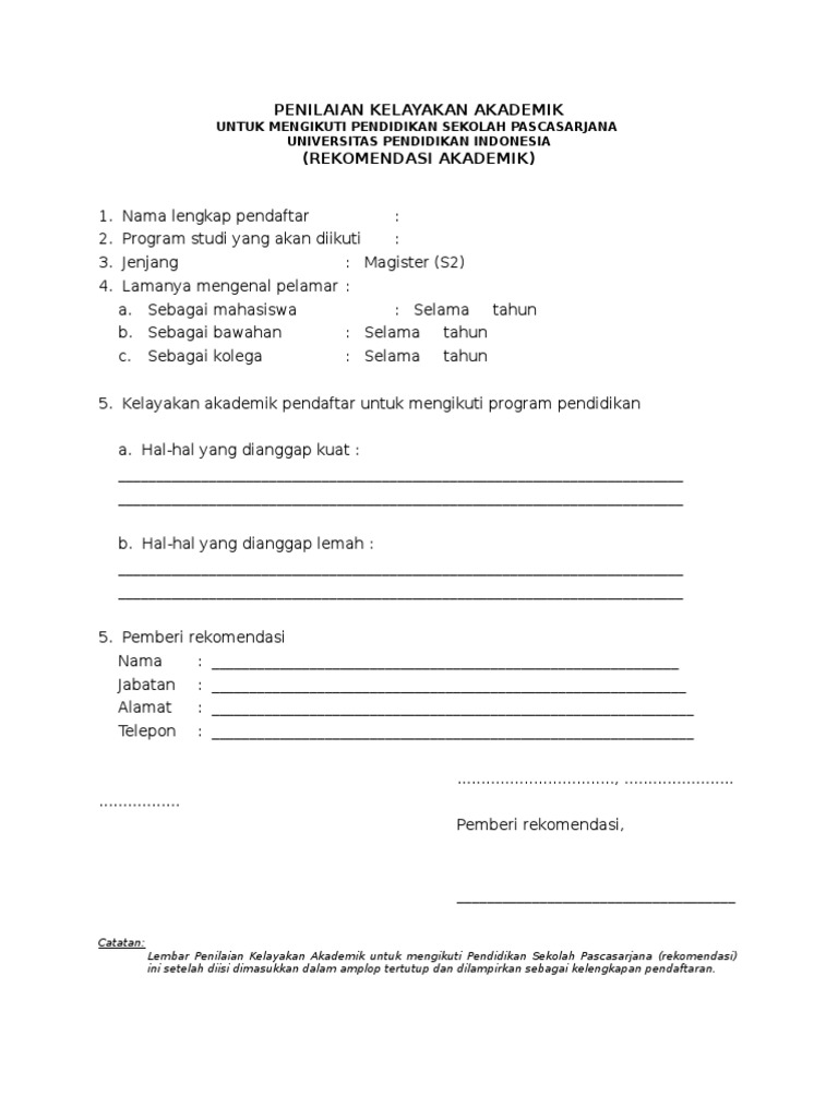 Persyaratan surat rekomendasi oleh universitas umumnya universitas akan meminta rekomendasi dari dosen pembimbing ataupun atasan pekerjaan jika telah bekerja untuk beberapa waktu. The collection that consisting of chosen picture and the.