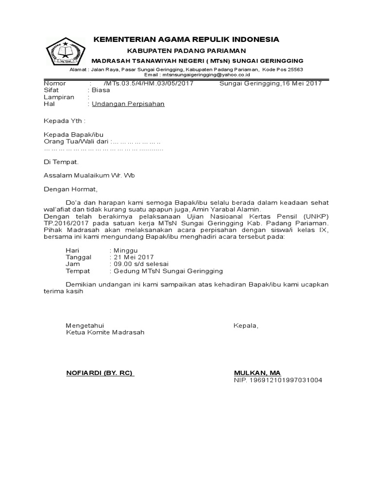 Perpisahan smp/mts di lakukan oleh kelas atas yakni kelas 9/ix,. Surat resmi perpisahan sekolah sd rasmi l format 1021 x 1800 pixel. Contoh surat undangan dinas perpisahan kelas xii contoh surat.