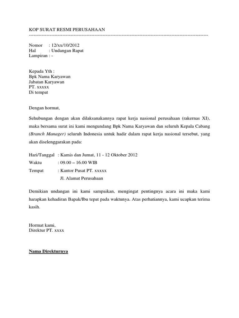 Contoh Surat Undangan Rapat Perusahaan Pdf