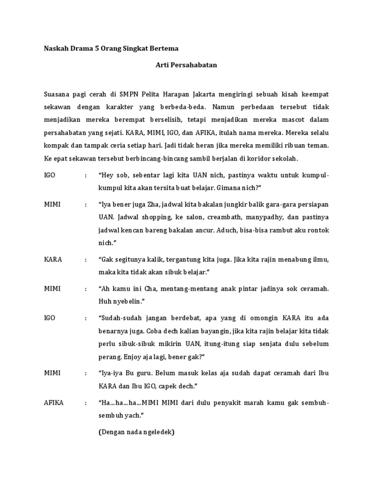 Naskah Drama 6 Orang Bertema Persahabatan Pdf