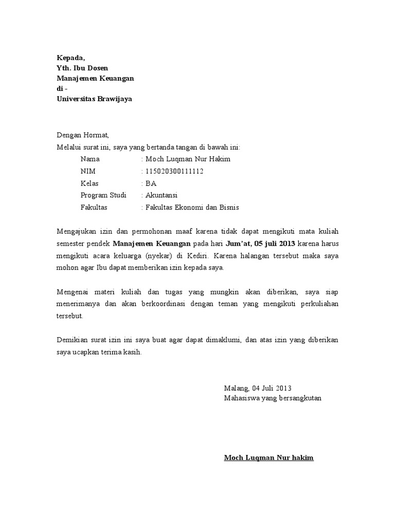Contoh Surat Izin Tidak Masuk Kuliah Karena Acara Keluarga Pdf