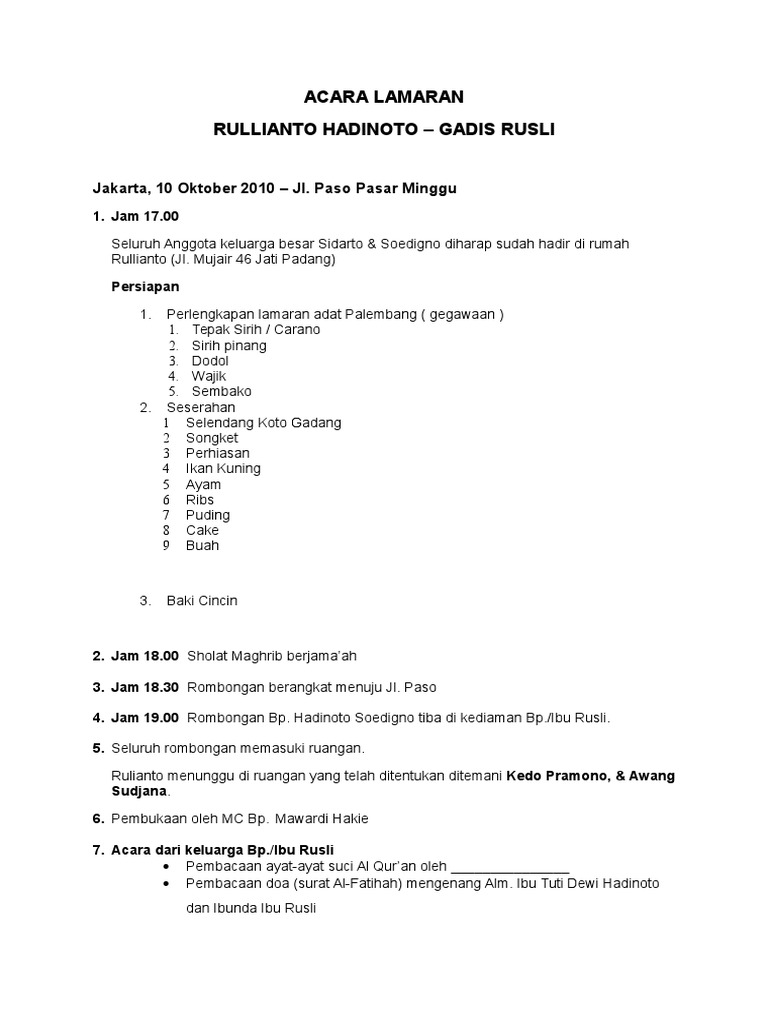 New Rundown Acara Lamaran Pdf