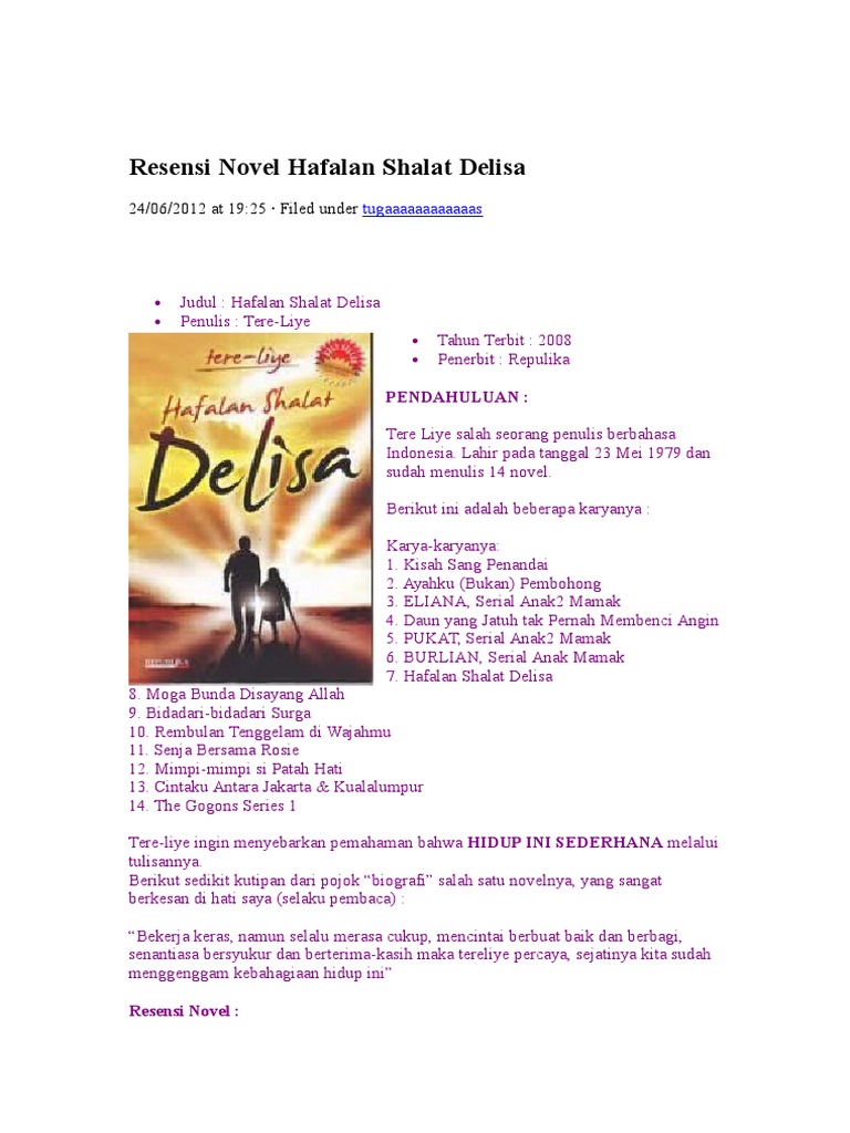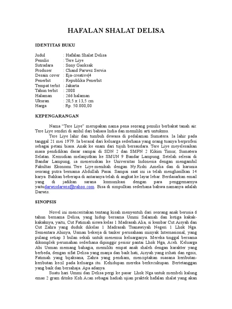 Teks ulasan novel hafalan shalat delisa. (2) pada teks ulasan “belajar ikhlas dari ‘hafalan shalat delisa’” tersebut terdapat. Tere liye 1.3 penerbit : Namun keberadaan uminya masih misterius.