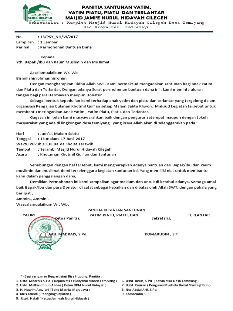 Surat Permohonan Bantuan Dana Untuk Yatim Dan Piatu Pdf