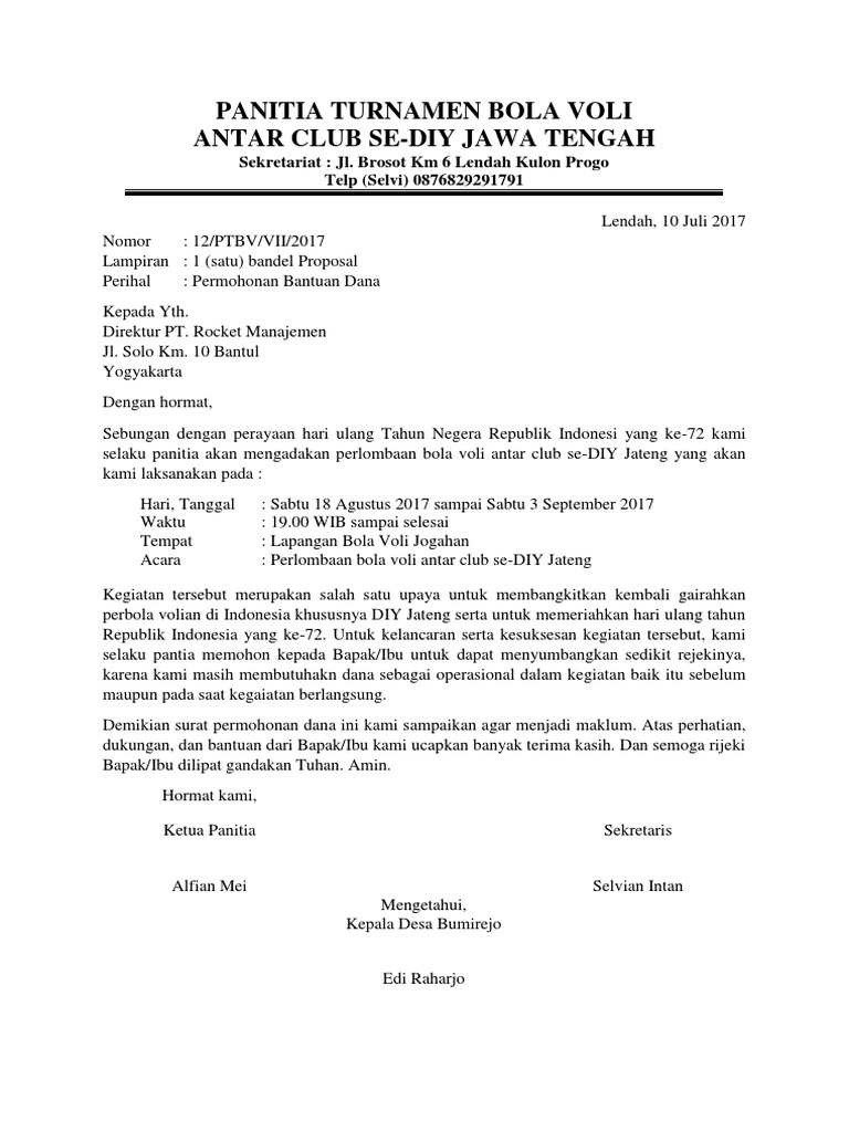 Contoh Surat Permohonan Bantuan Dana Kegiatan Yang Benar - Suratkerjacom