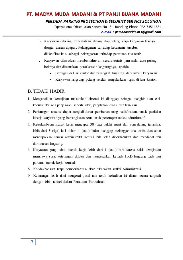 Sop merupakan singkatan dari standard operating procedure.sop adalah p rosedur operasi standar jangka yang mempunyai istilah sebagai prosedur kerja yang umum (general) dalam konteks keseluruhan dan terstruktur. Jam kerja di perusahaan adalah minimal 40 jam kerja per minggu sesuai dengan keputusan menakertrans no. Surat permohonan pengesahaan peraturan perusahaan.