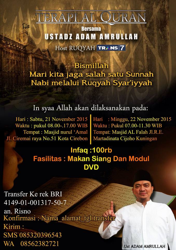 Ustadz adam amrullah adalah pembawa acara ruqyah syari'ah di trans 7 sekaligus praktisi ruqyah syari'ah. Hotel whiz prime kota malang htm (tiket) transfer : Pemohon ruqyah hanya dapat menghubungi tim ruqyah yayasan arsyada yadaka indonesia, karena ustadz.