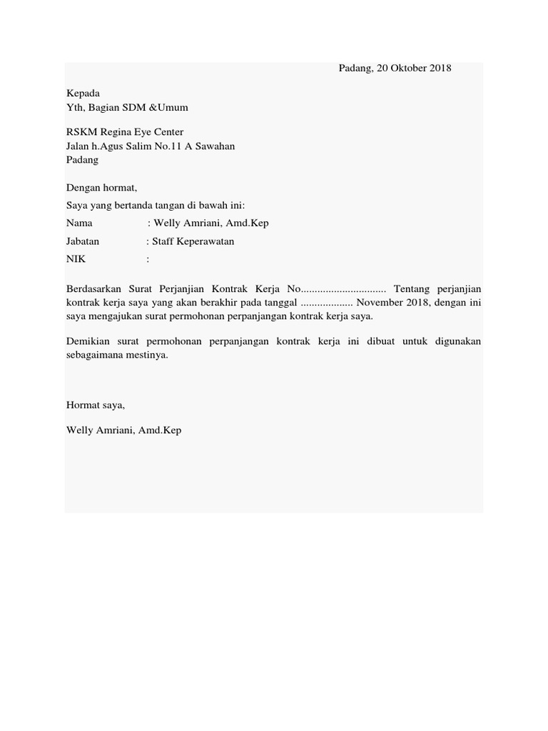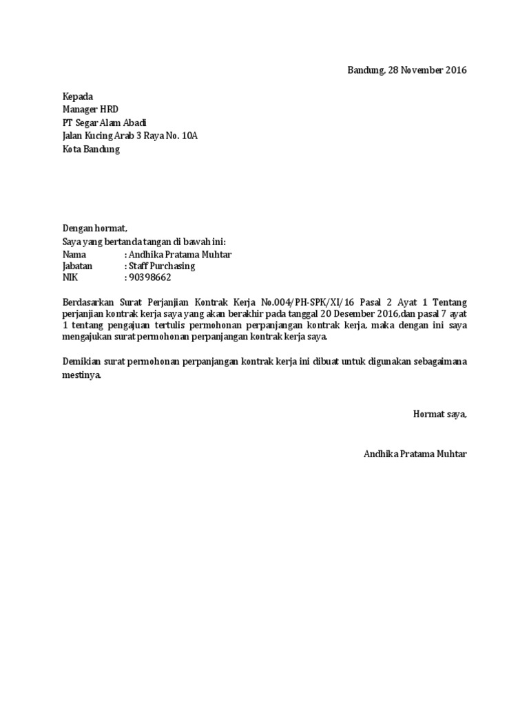 Contoh Surat Permohonan Perpanjangan Kontrak Kerja Karyawan Swasta Pdf